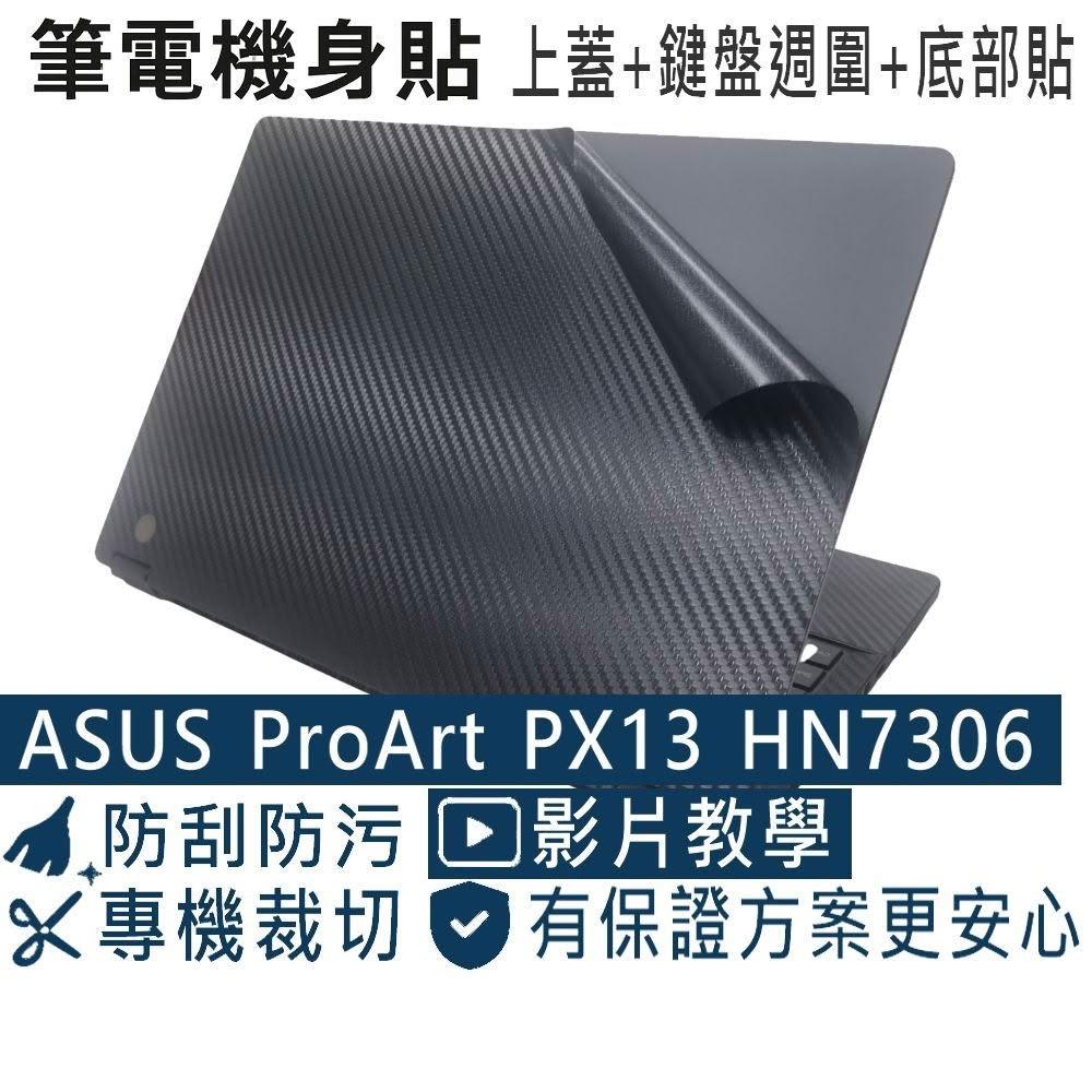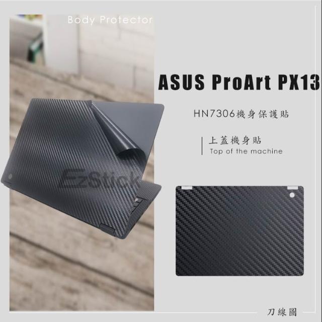 EzstickASUS ProArt PX13 HN7306 筆電機身貼|黑色卡夢紋|上蓋+鍵盤週圍+底部貼|深色機專用