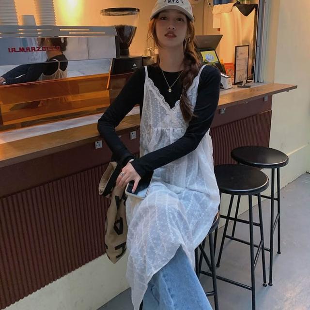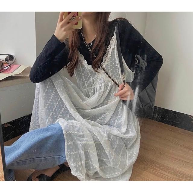 網紗蕾絲吊帶外搭洋裝 🤍現貨🤍外搭裙 背心連衣裙 細肩帶背心裙 洋裝 日系疊穿 R&A Clothes