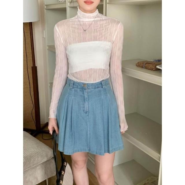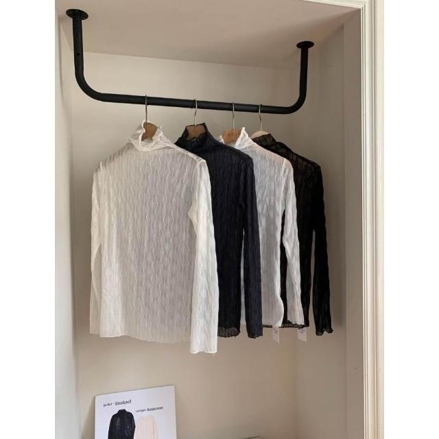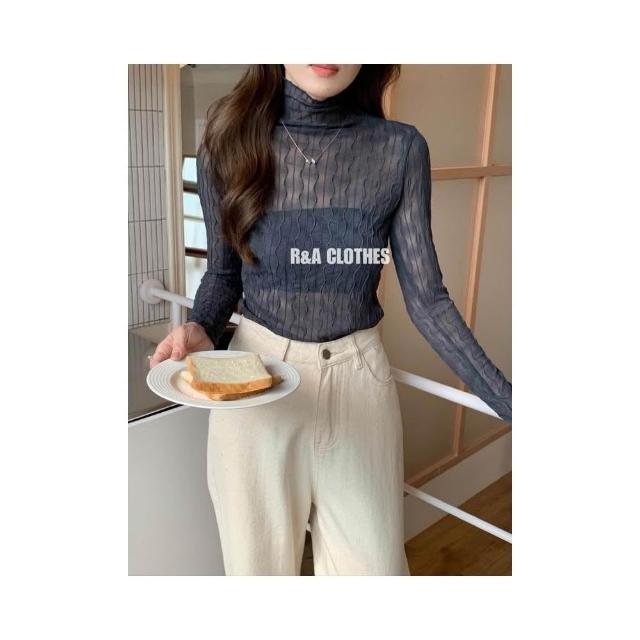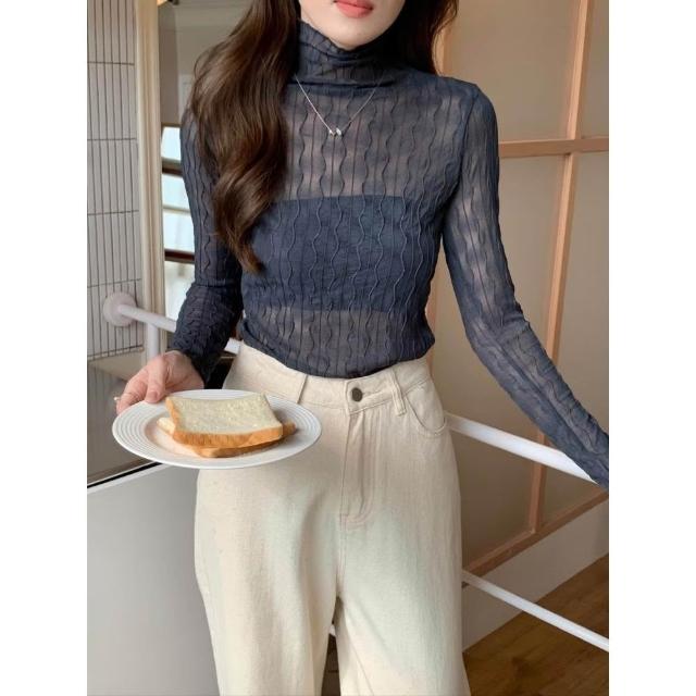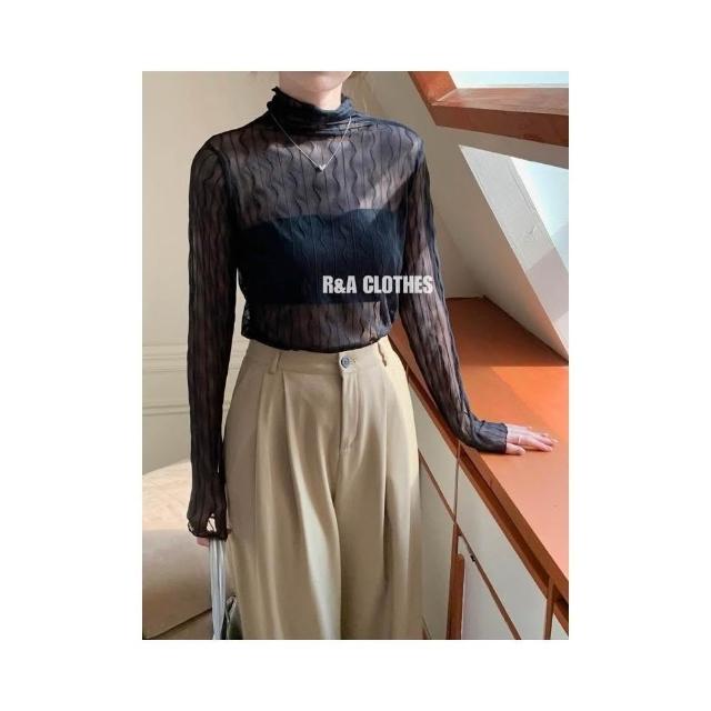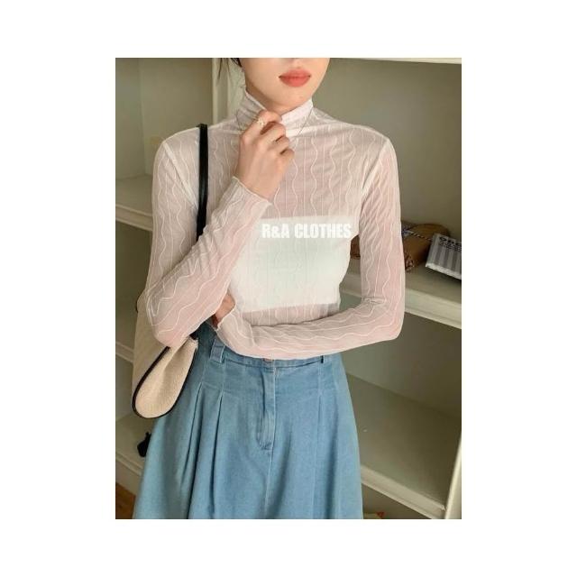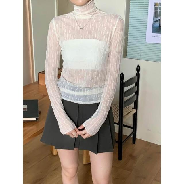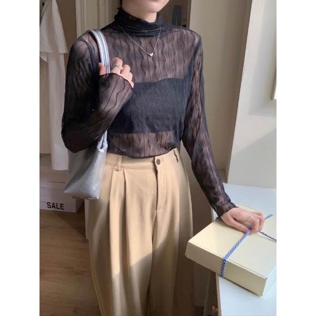 簡約波紋設計透膚內搭上衣🤍現貨🤍網紗透膚波浪紋木耳邊內搭上衣 蕾絲網紗上衣 網紗內搭 線條水波紋