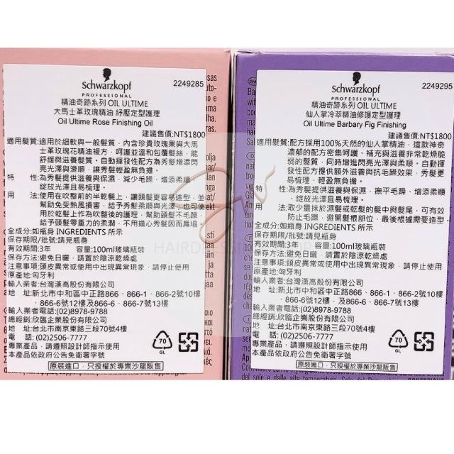 Schwarzkopf 施華蔻 專業系列 仙人掌冷萃精油 大馬士革玫瑰精油 免沖護髮油 正品公司貨 護髮油 細軟髮 粗硬髮 保濕潤澤感