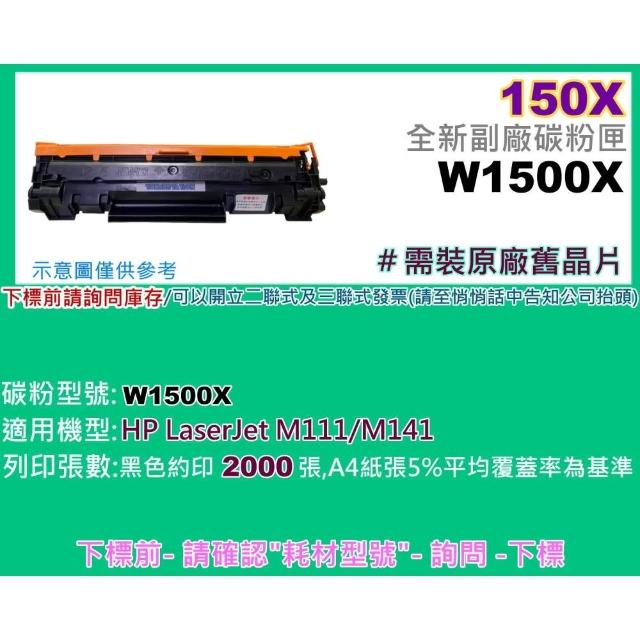 HP 惠普碳粉補給站 W1500A/W1500X全新可填充式副廠碳粉匣/無晶片/需裝原廠舊晶片M111W/ M141W適用