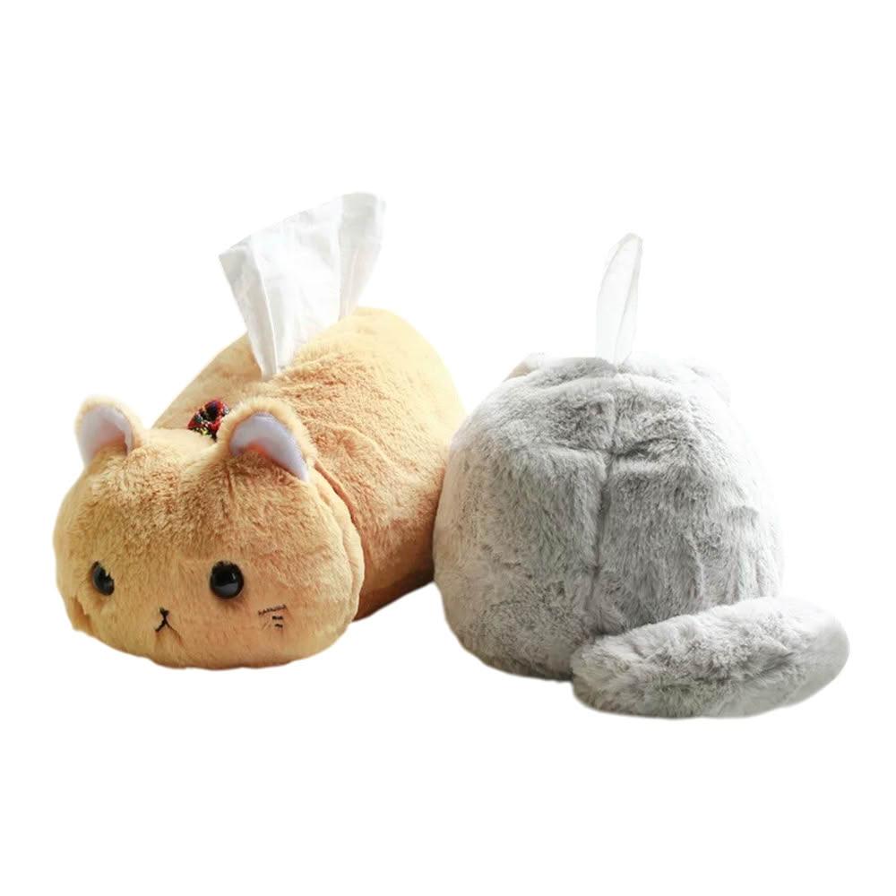 喵呼嚕貓咪面紙盒 毛絨小貓衛生紙盒/餐巾紙盒/小紙巾套/抽紙盒/車用面紙套