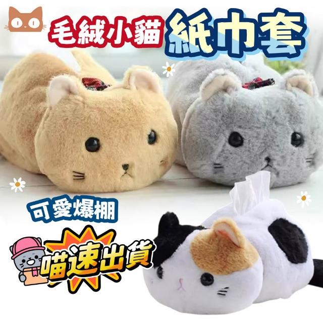 喵呼嚕貓咪面紙盒 毛絨小貓衛生紙盒/餐巾紙盒/小紙巾套/抽紙盒/車用面紙套