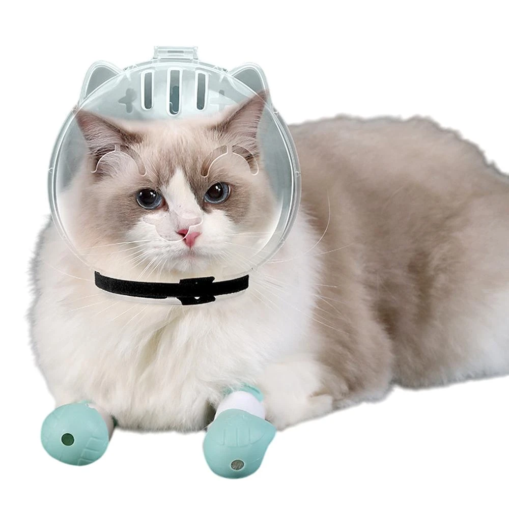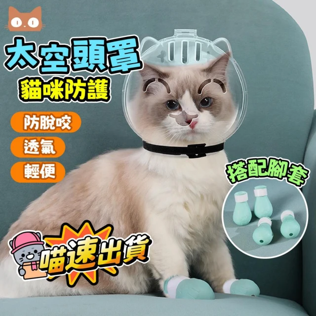 喵呼嚕貓咪太空球罩 貓頭套 剪指甲頭罩 防咬頭套 矽膠貓腳套 貓手套