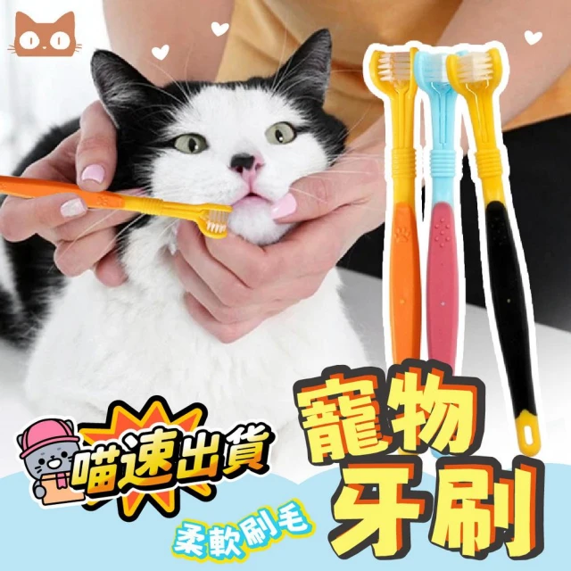 喵呼嚕寵物三面牙刷 三頭牙刷 犬貓潔牙工具 狗牙刷 貓牙刷 軟毛刷