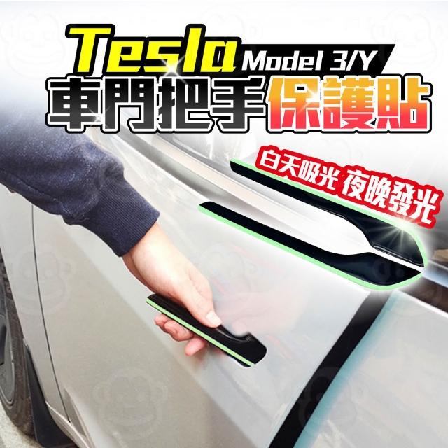 喵呼嚕Tesla車門把手防刮貼(4入) 夜光門把貼 特斯拉 Model Y/3 車門外拉手貼片