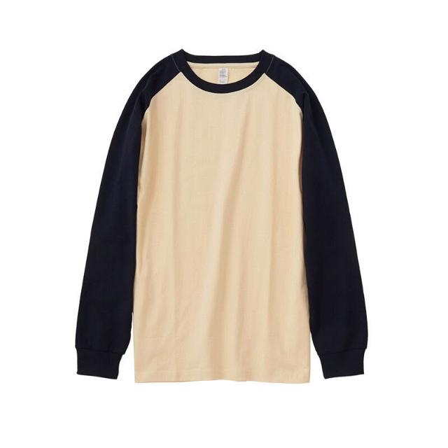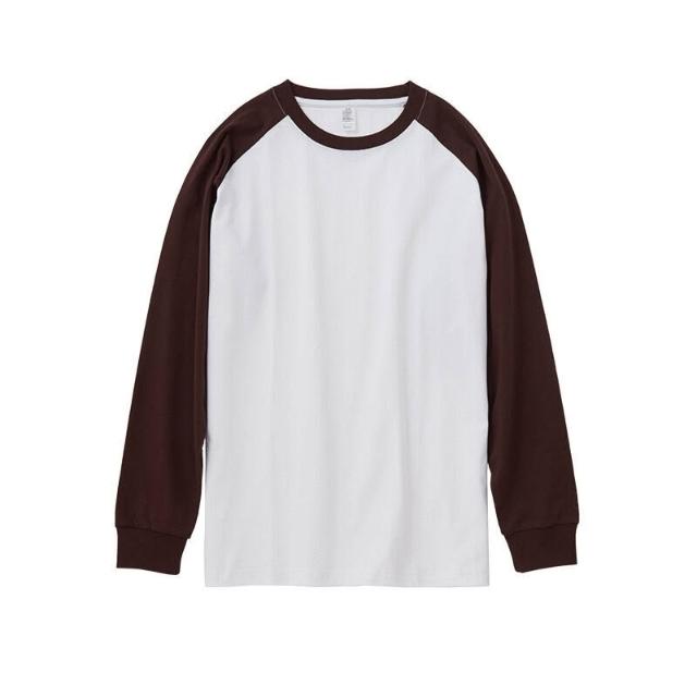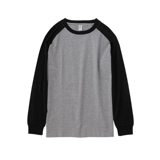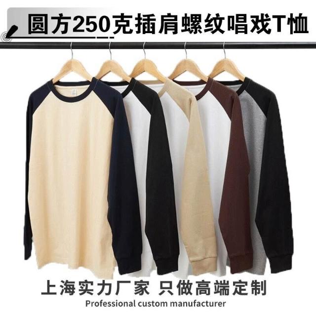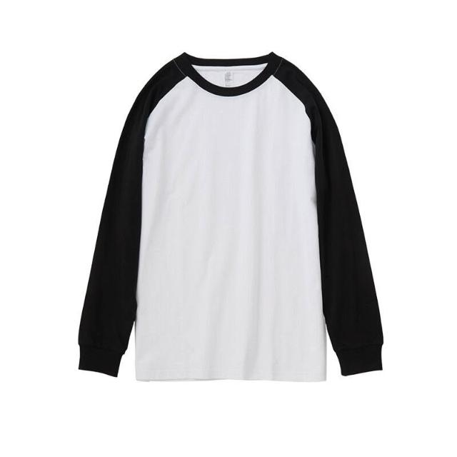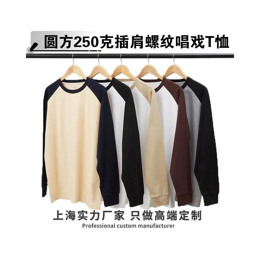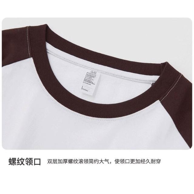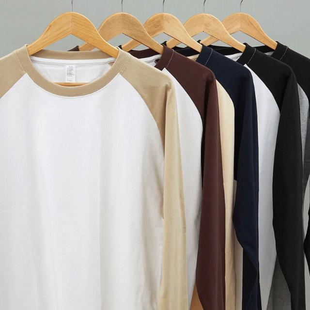 🚀隔日到貨&舒適透氣💨 新款juemiao250克撞色插肩圓領長袖T恤男休閑寬松時尚百搭