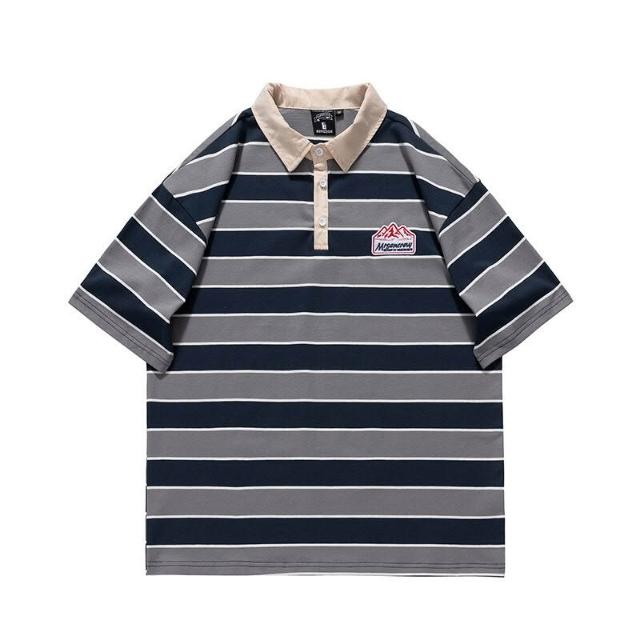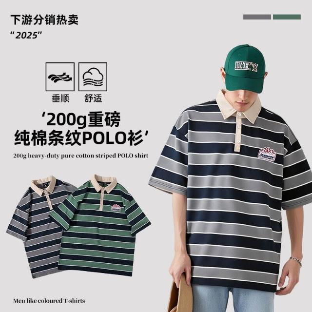 🚀隔日到貨&舒適透氣💨 嚴選條紋polo衫男 翻領寬松男士學院風短袖衫顯瘦條紋T恤