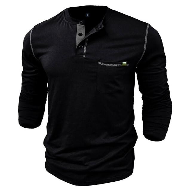 🚀隔日到貨&舒適透氣💨 2024亨利男t恤 長袖亨利衫拼色針織體恤男