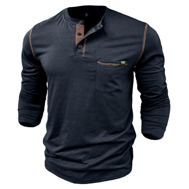 🚀隔日到貨&舒適透氣💨 2024亨利男t恤 長袖亨利衫拼色針織體恤男