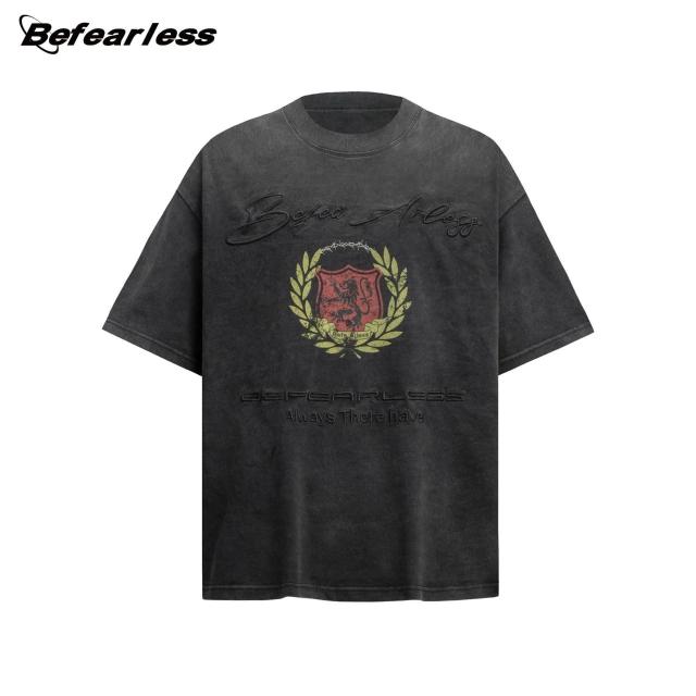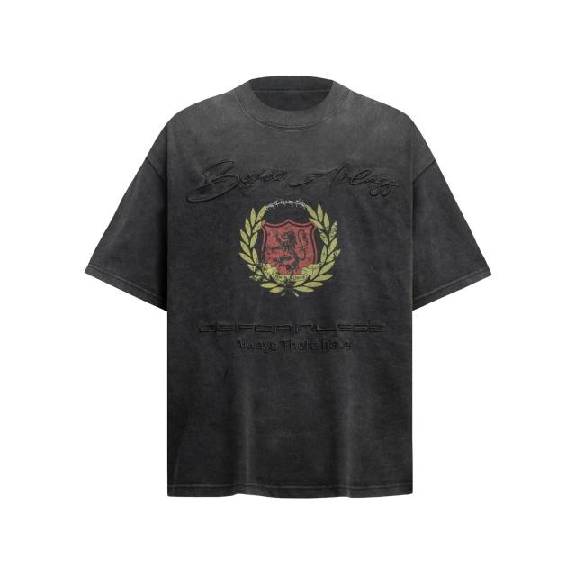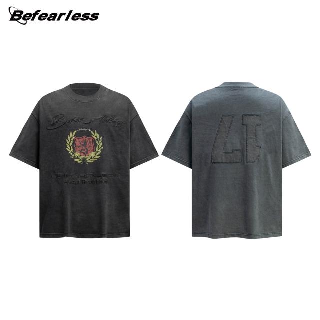 🚀隔日到貨&舒適透氣💨 美式水洗刺繡短袖T恤男女潮牌做舊寬松印花vintage高級感tee