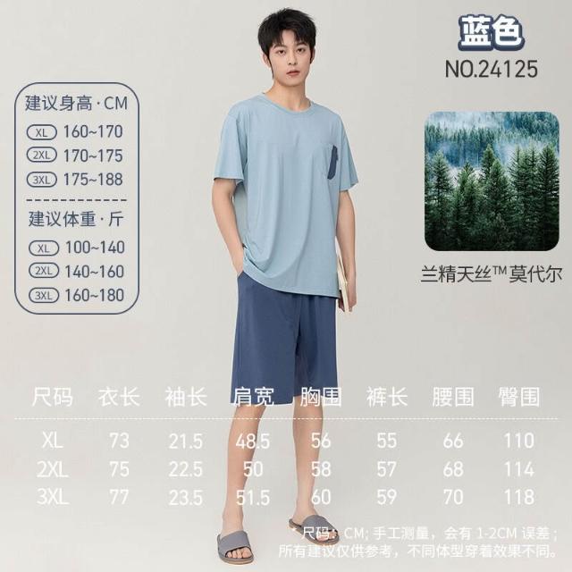 🚀隔日到貨&舒適透氣💨 【蘭精莫棉】涼感男士家居服冰泉棉圓領短袖短褲涼感男睡衣套裝