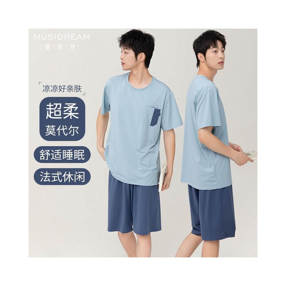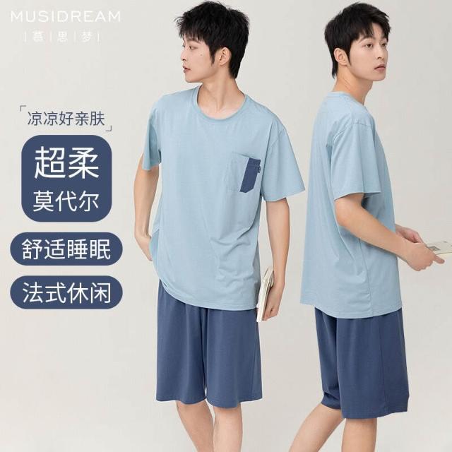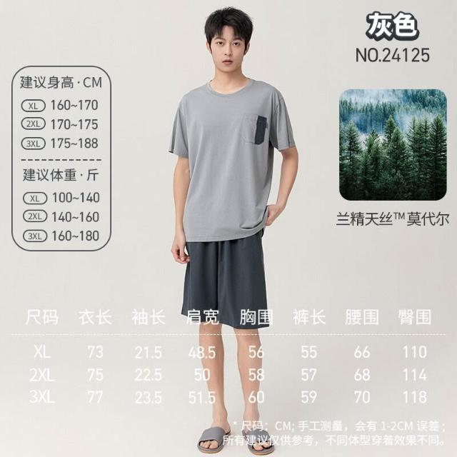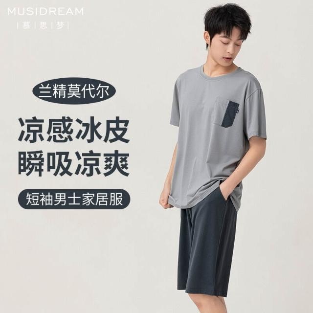 🚀隔日到貨&舒適透氣💨 【蘭精莫棉】涼感男士家居服冰泉棉圓領短袖短褲涼感男睡衣套裝