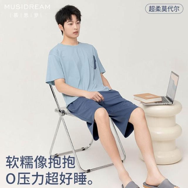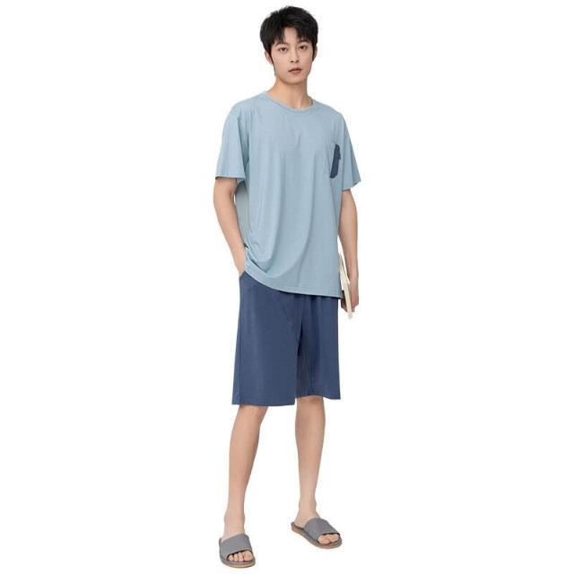 🚀隔日到貨&舒適透氣💨 【蘭精莫棉】涼感男士家居服冰泉棉圓領短袖短褲涼感男睡衣套裝