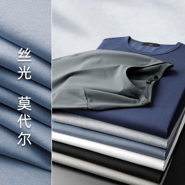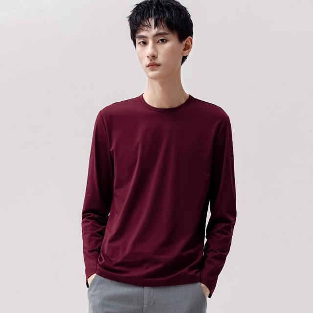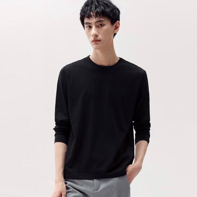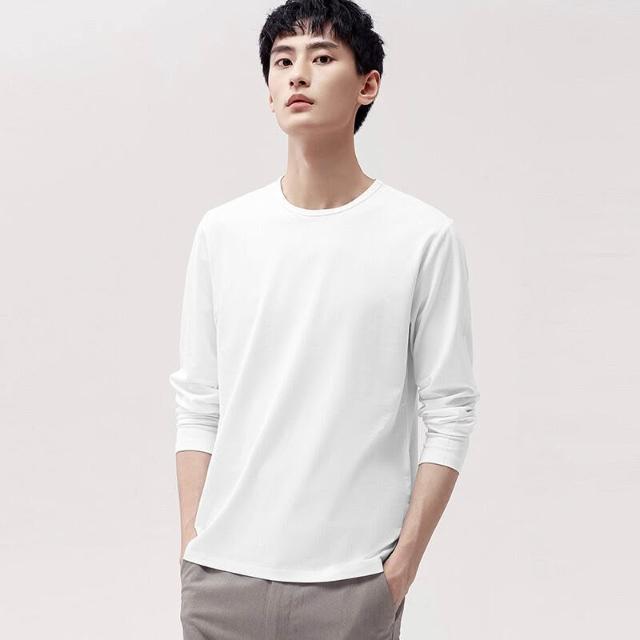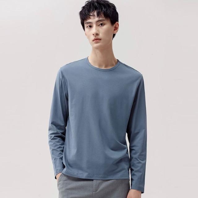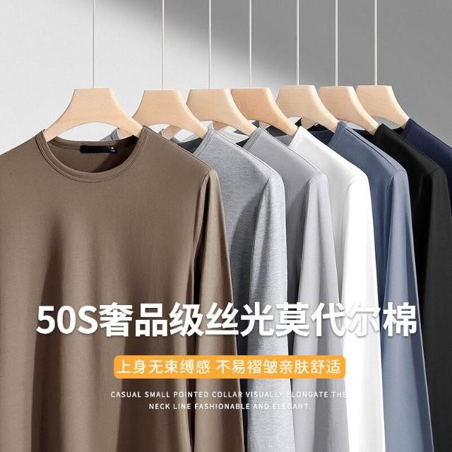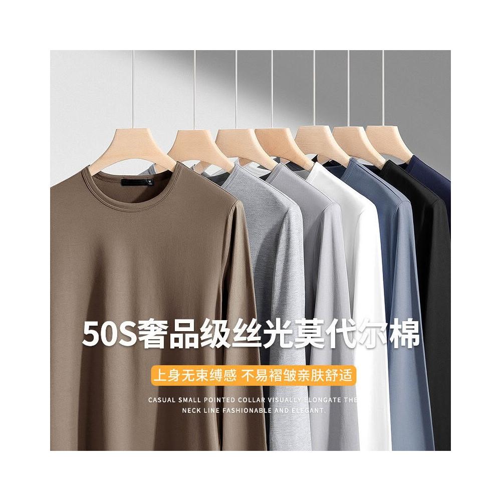 🚀隔日到貨&舒適透氣💨 派丹圖-莫代爾棉長袖圓領T恤純色打底衫春秋裝上衣服男潮牌秋衣