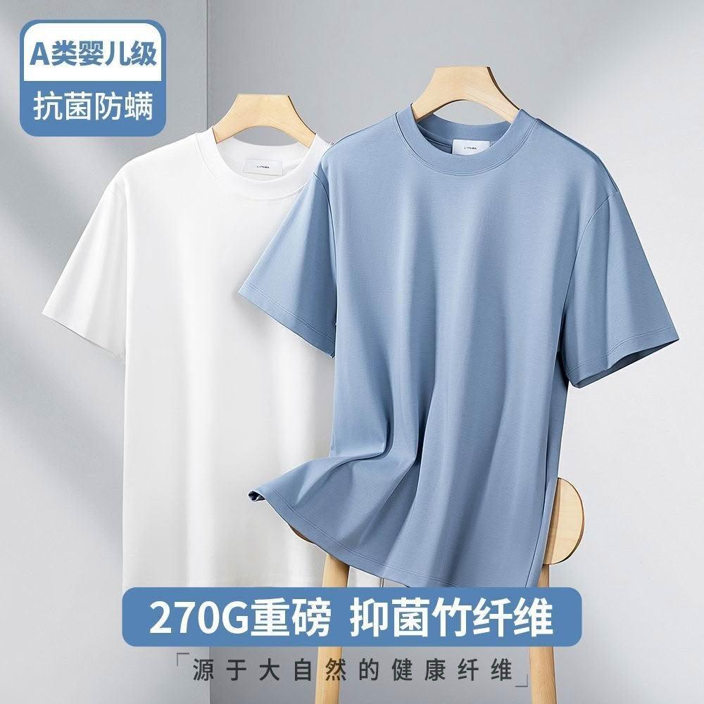 🚀隔日到貨&舒適透氣💨 【270G天然竹纖維】短袖t恤男夏季薄款冰絲涼感透氣半袖純色上衣