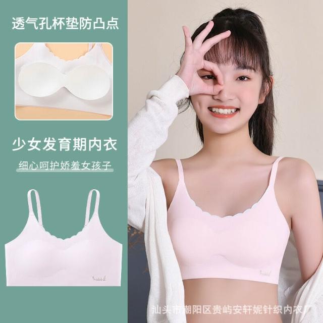 🎌日本工藝&柔軟舒適💨 少女內衣夏季薄款冰絲細帶小背心發育期女孩初中高中學生無痕文胸