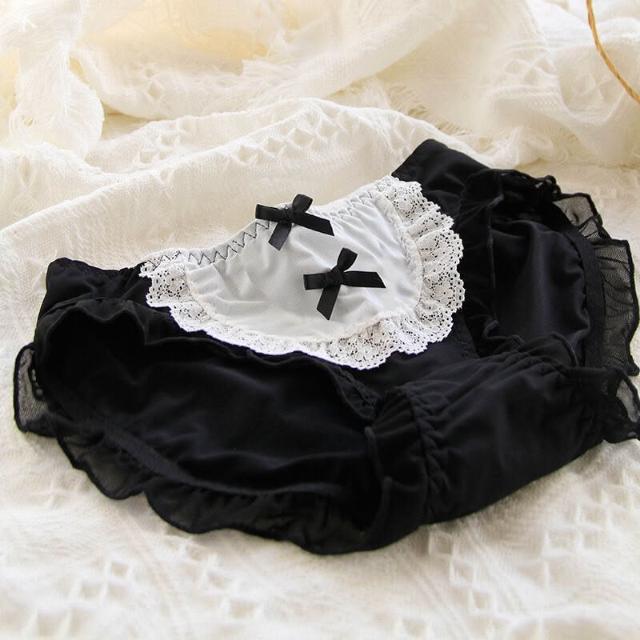 🎌日本工藝&限時特賣💨 洛麗塔製服女仆冰絲內褲黑暗少女蕾絲中腰內褲Lolita風 A002