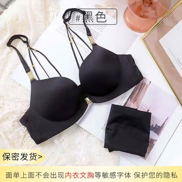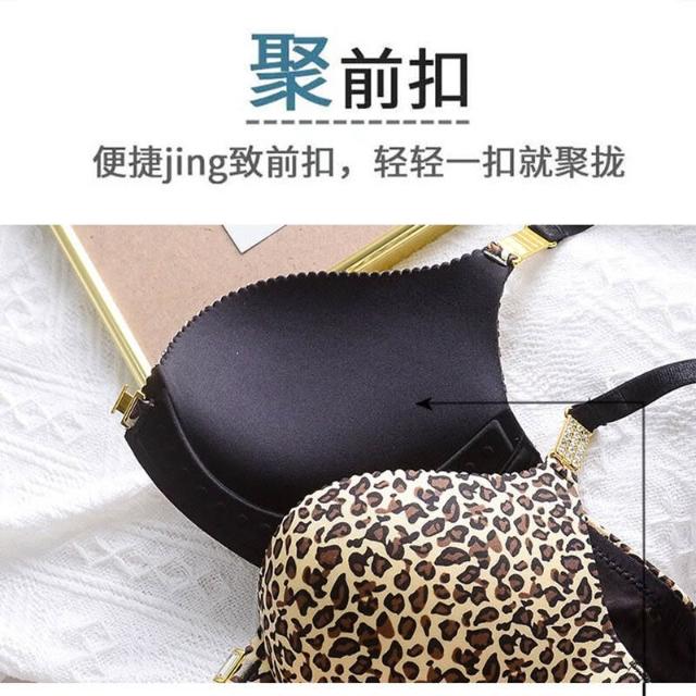 🎌日本工藝&限時特賣💨 性感豹紋前扣小胸美背內衣女上托交叉肩帶薄款聚攏無鋼圈文胸套裝