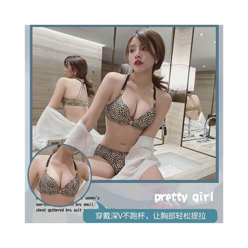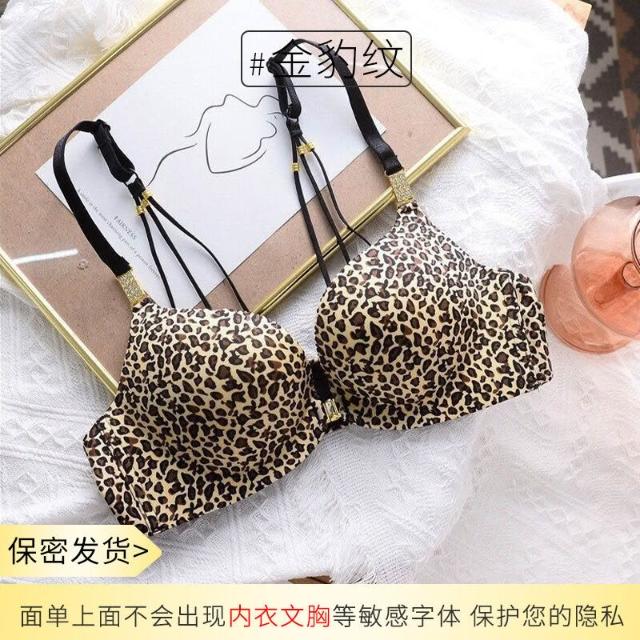🎌日本工藝&限時特賣💨 性感豹紋前扣小胸美背內衣女上托交叉肩帶薄款聚攏無鋼圈文胸套裝