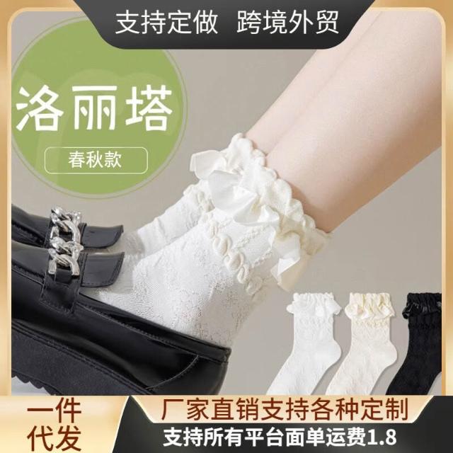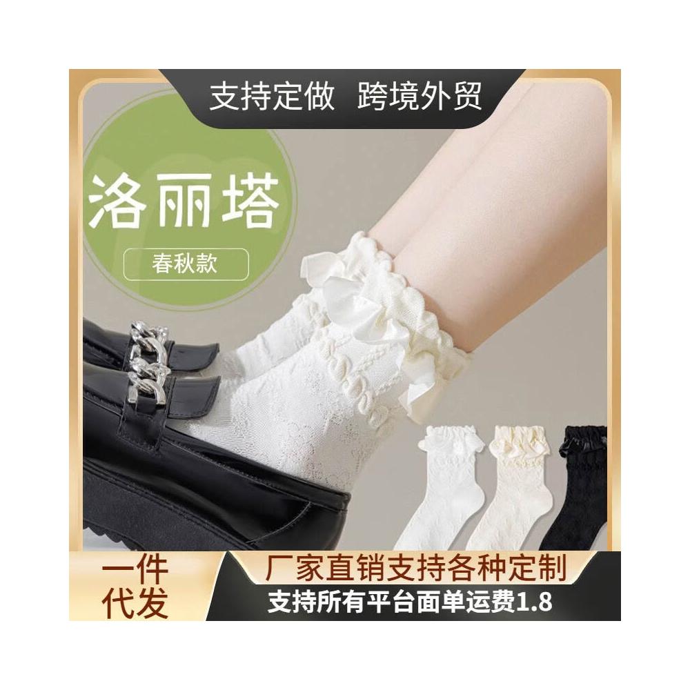 🎌日本工藝&限時特賣💨 洛麗塔白色蕾絲花邊襪子女Lolita夏季薄款中筒配樂福鞋公主襪