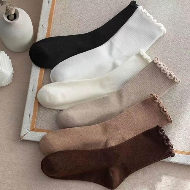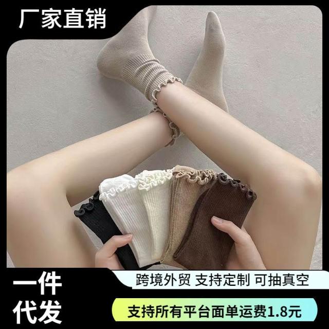🎌日本工藝&限時特賣💨 襪子女中筒襪春秋款木耳邊花邊襪ins百搭堆堆襪秋冬季jk女襪