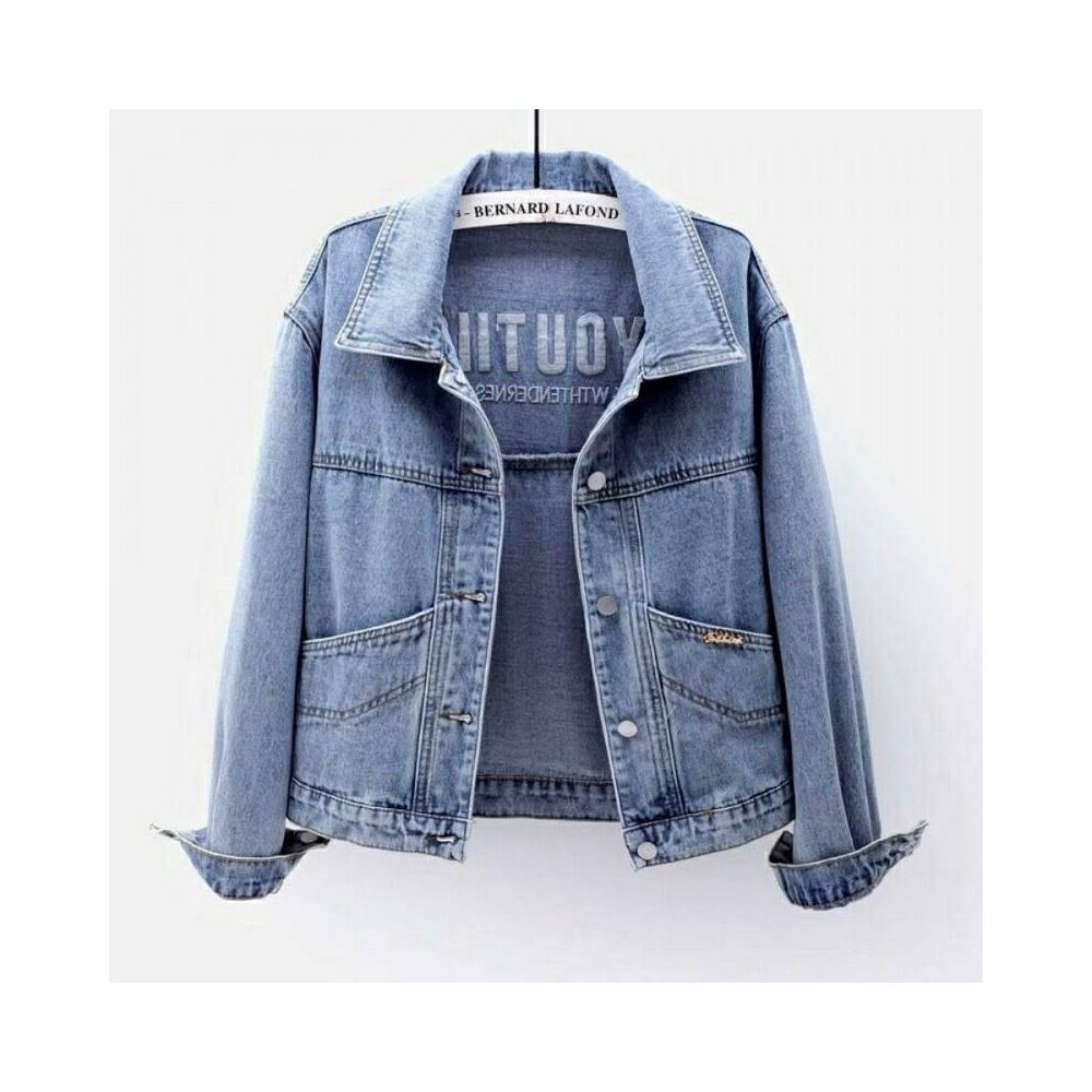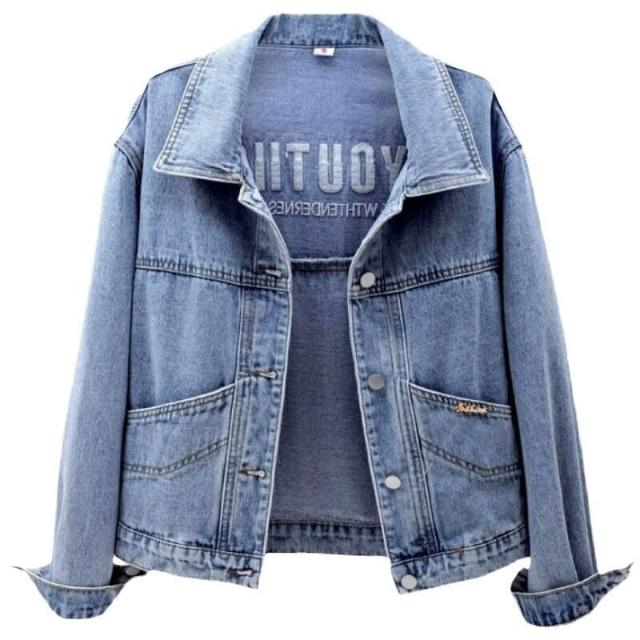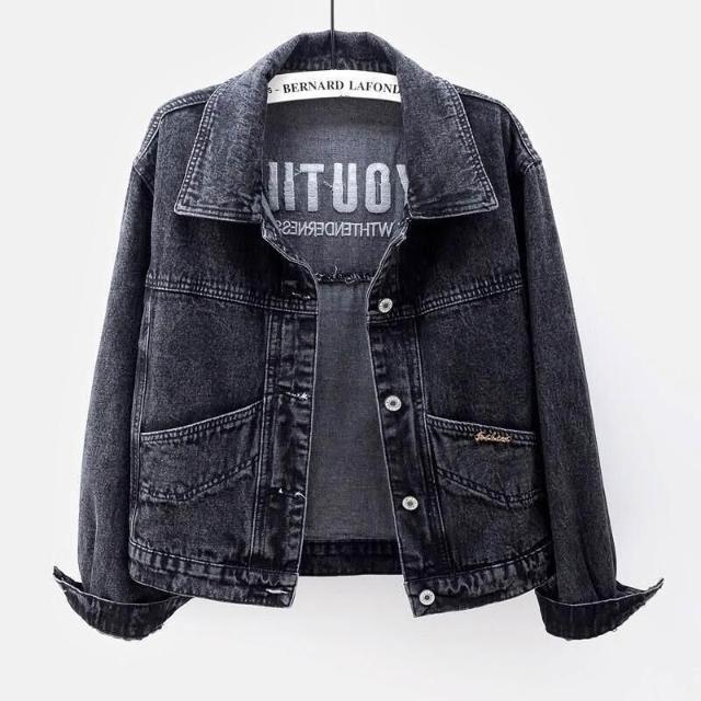 🎌日本工藝&柔軟親膚💨 牛仔外套女韓版寬松春秋百搭新款顯瘦刺繡純色短款黑色夾克上衣服
