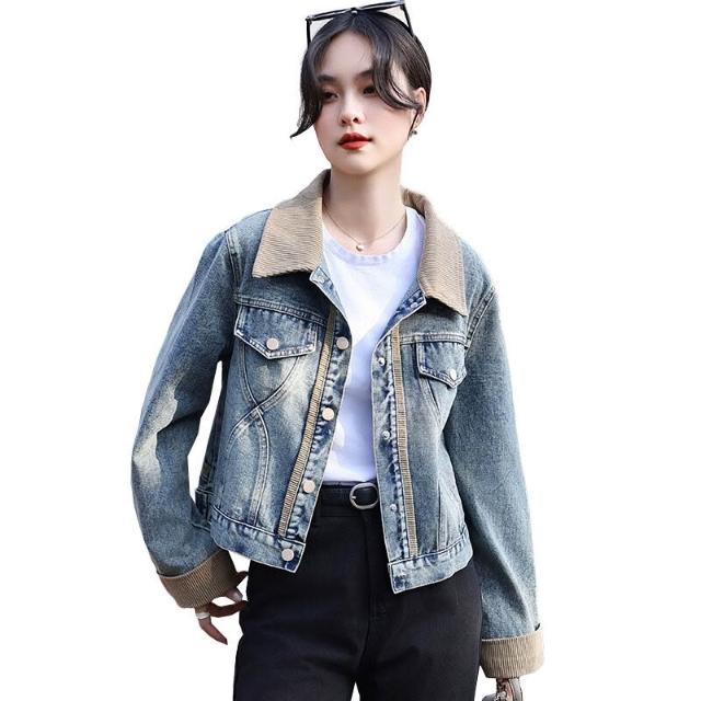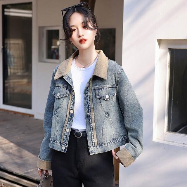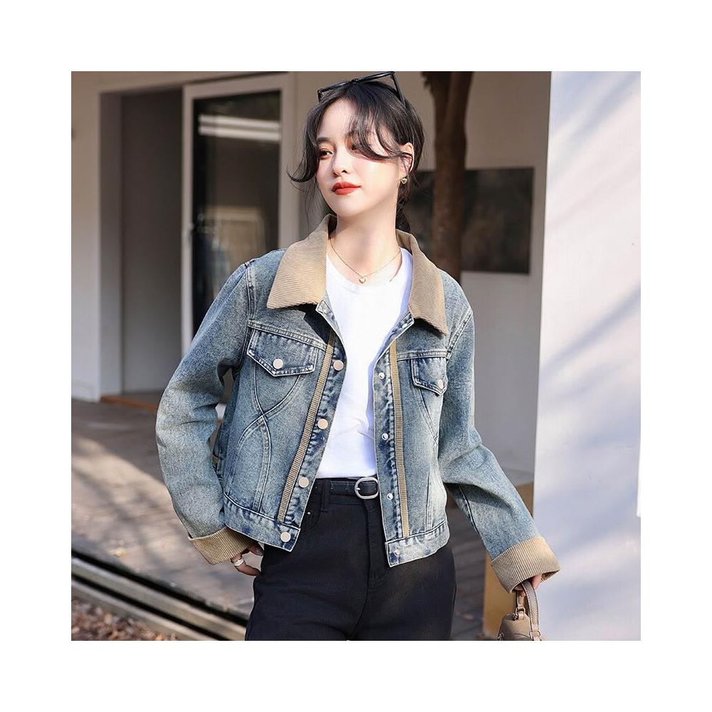 🎌日本工藝&柔軟親膚💨 撞色拼接牛仔外套女春秋寬松設計感小眾小個子短款夾克上衣潮