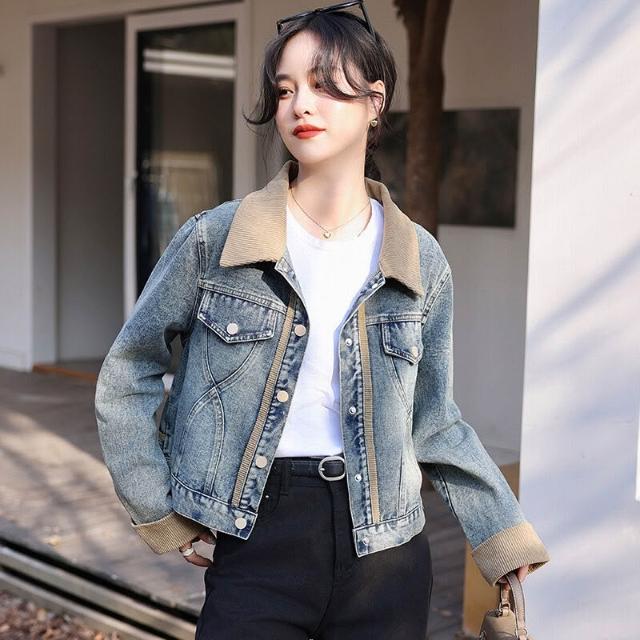 🎌日本工藝&柔軟親膚💨 撞色拼接牛仔外套女春秋寬松設計感小眾小個子短款夾克上衣潮