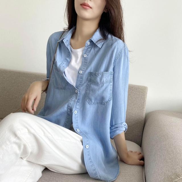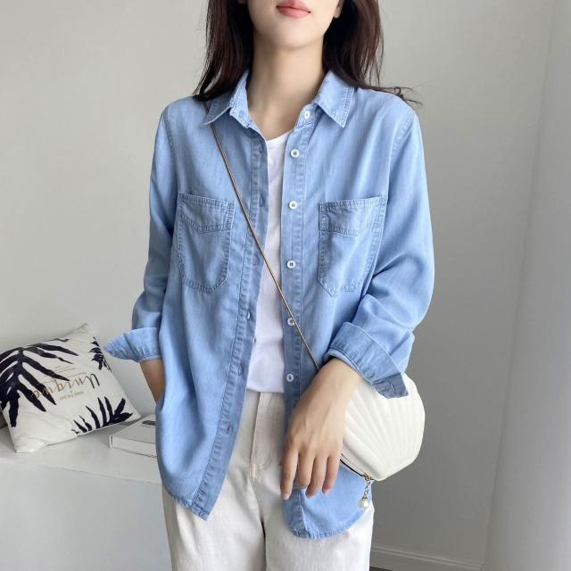 🎌日本工藝&柔軟親膚💨 早秋薄款牛仔襯衫 女韓版2023春夏新款寬松休閑襯衣上衣外套2114