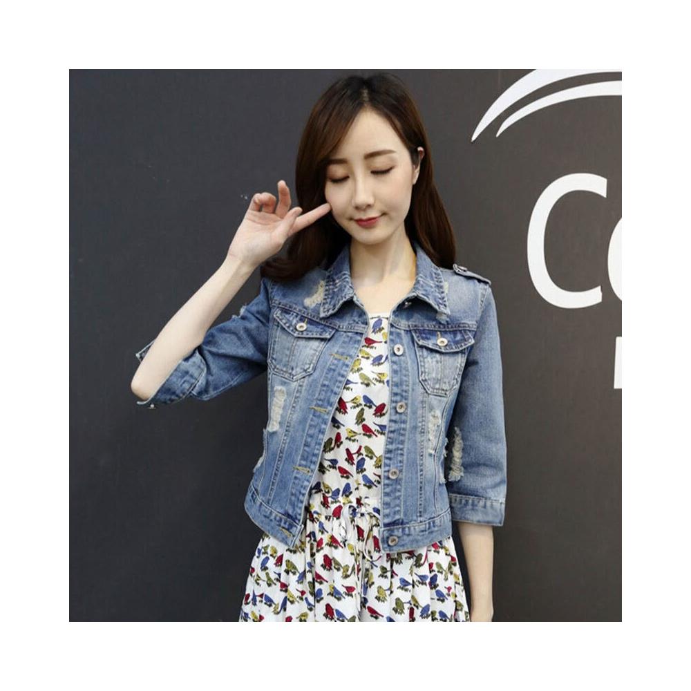 🎌日本工藝&柔軟親膚💨 牛仔外套女短款修身韓版潮百搭七分袖春秋牛仔服長袖上衣破洞大碼