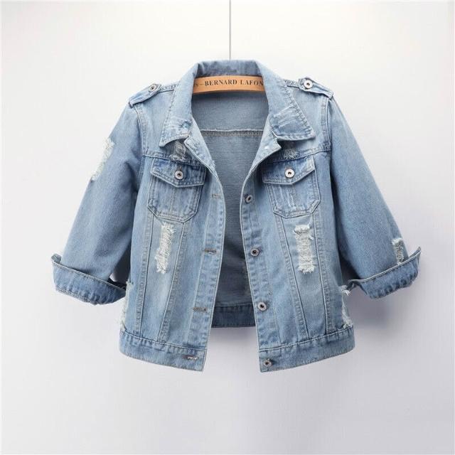 🎌日本工藝&柔軟親膚💨 牛仔外套女短款修身韓版潮百搭七分袖春秋牛仔服長袖上衣破洞大碼