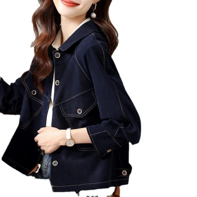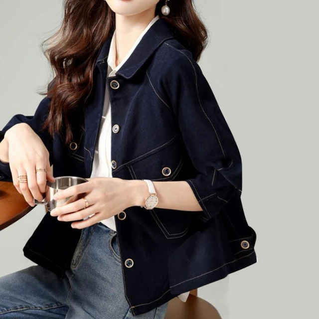 🎌日本工藝&柔軟親膚💨 百搭單品2024春秋新款時尚寬松上衣長袖顯瘦短款牛仔夾克外套