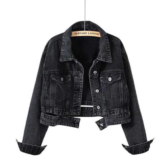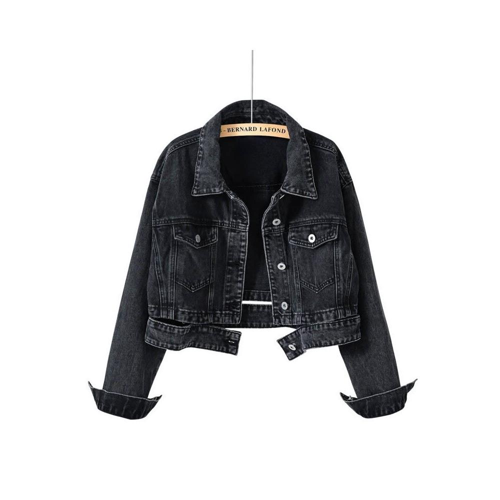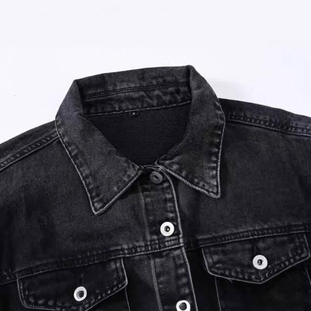 🎌日本工藝&柔軟親膚💨 潮炸街牛仔外套女裝春秋新款黑色高腰別致牛仔短夾克上衣