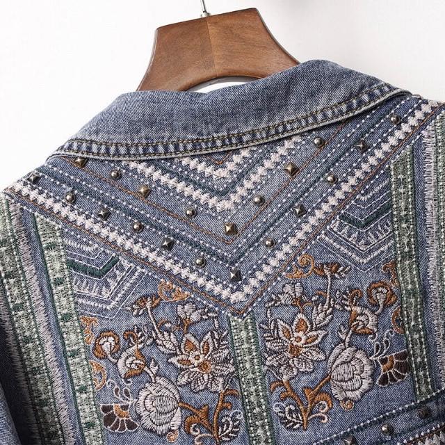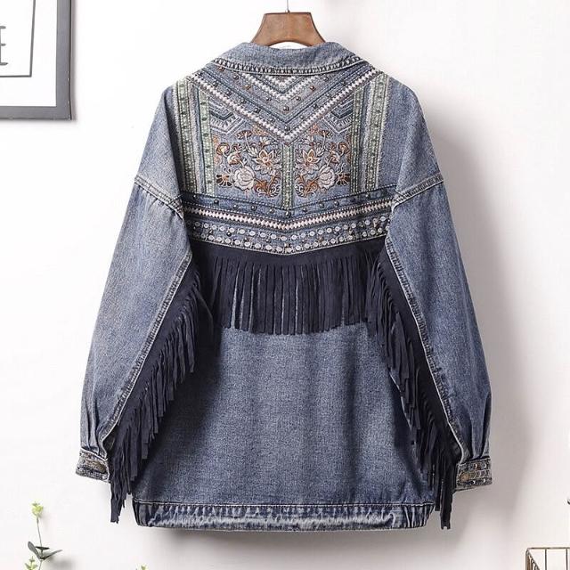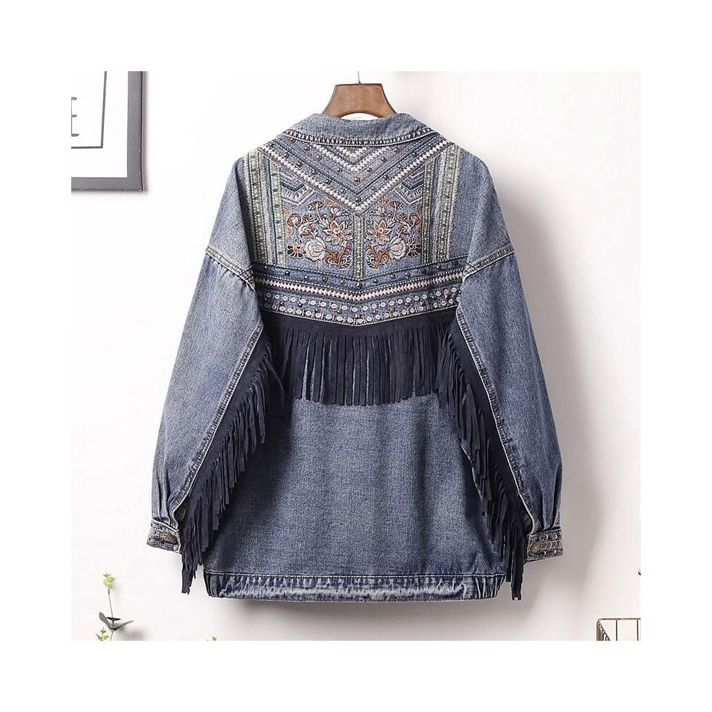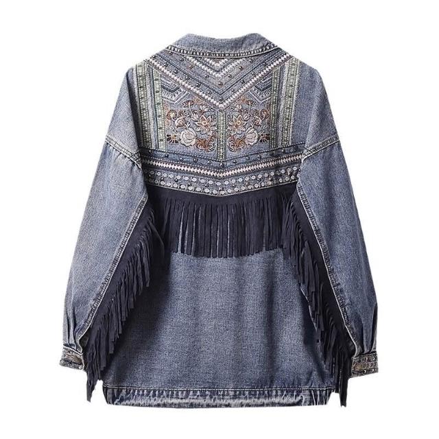 🎌日本工藝&柔軟親膚💨 秋季牛仔外套女潮牌風中長款夾克寬松刺繡女士牛仔外套