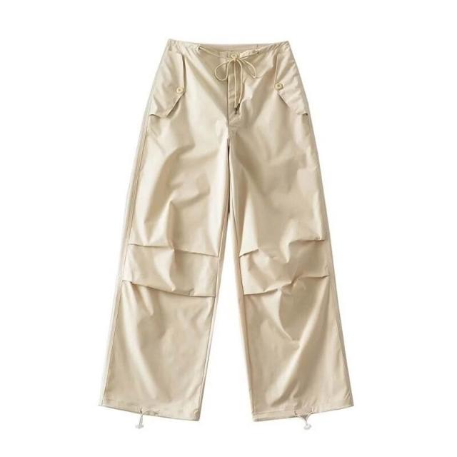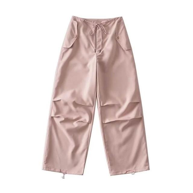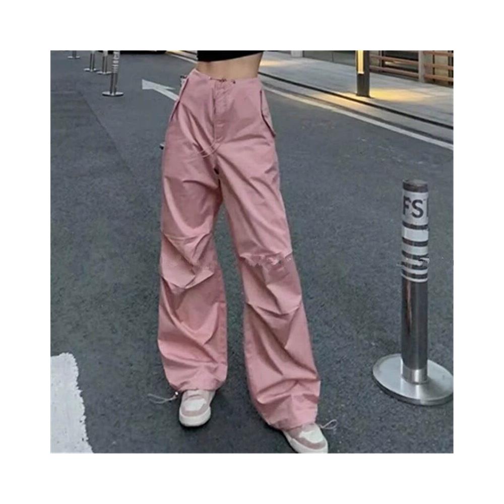 🎌日本工藝&柔軟親膚💨 辣妹同款休閑街拍辣妹長褲女夏季甜酷抽繩高腰闊腿粉色工裝褲女