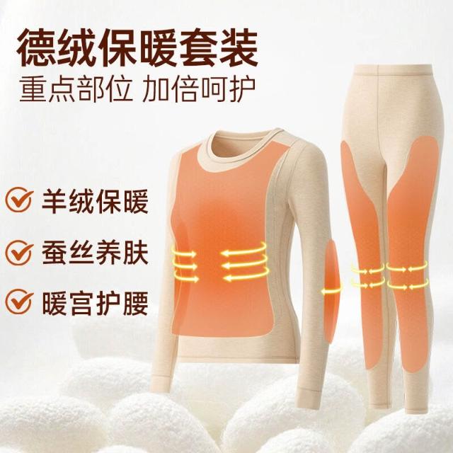 🌟日式匠藝 &雲感體驗☁️ 大貼護秋冬德絨保暖內衣女加厚秋衣秋褲蠶絲羊絨套裝可外穿