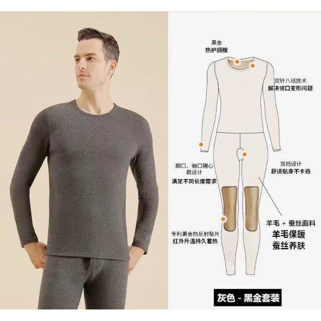 🌟日式匠藝 &雲感體驗☁️ 黑金鎖溫石墨烯男女保暖內衣德絨黑金貼片沸騰衣發熱秋衣保暖套裝