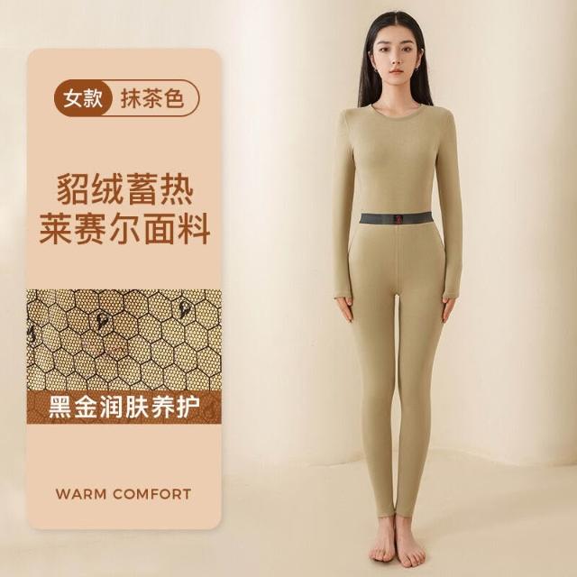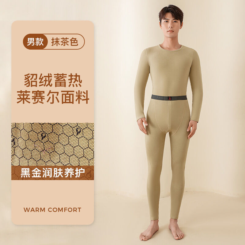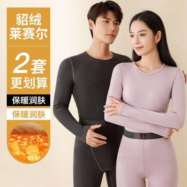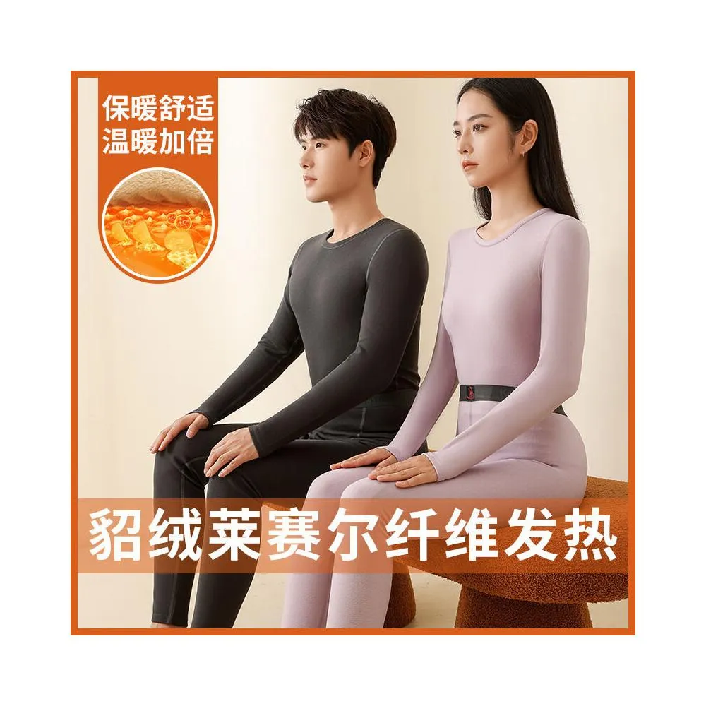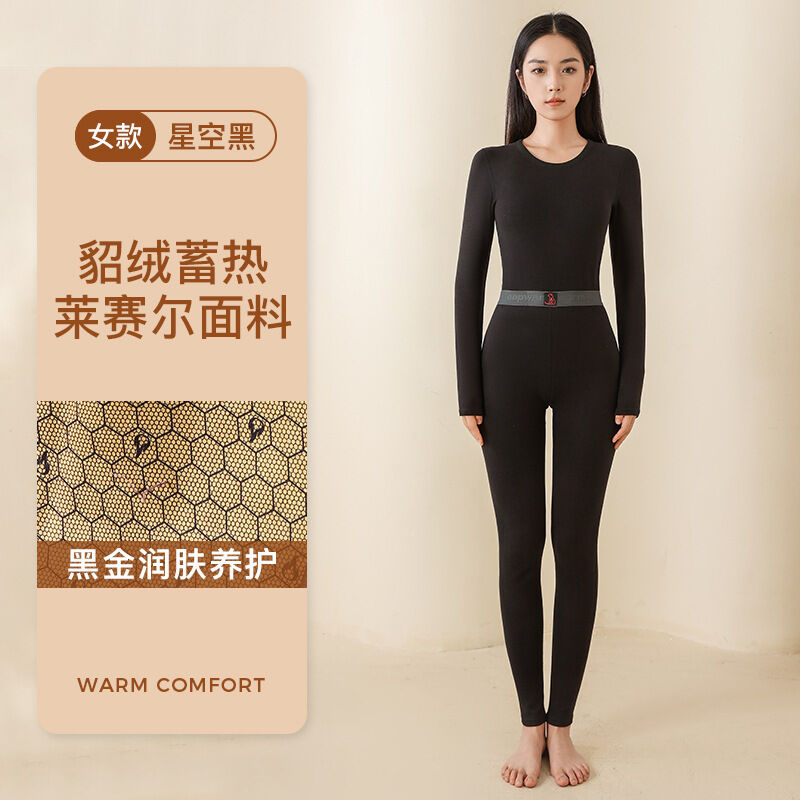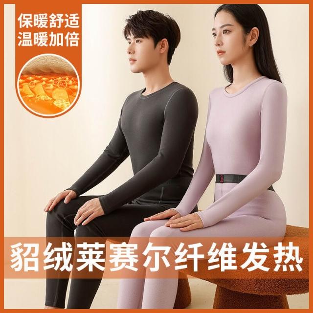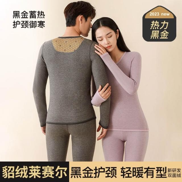🌟日式匠藝 &雲感體驗☁️ 冬季新款女士保暖內衣套裝加絨情侶黑金貂絨貼片男士保暖套裝