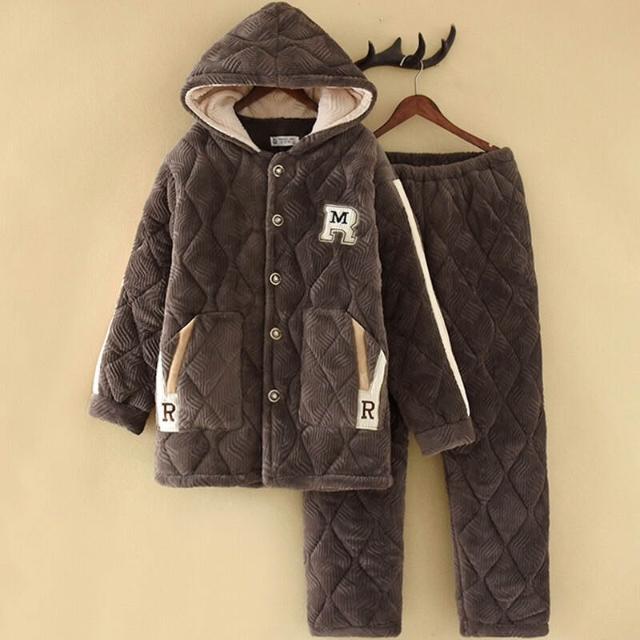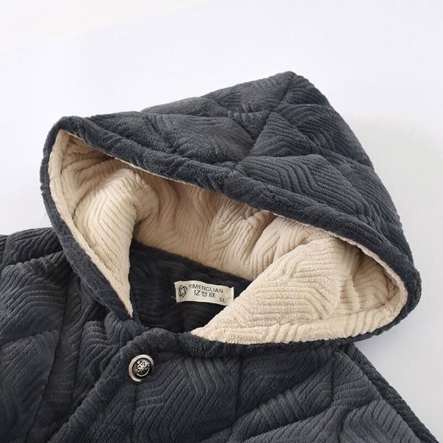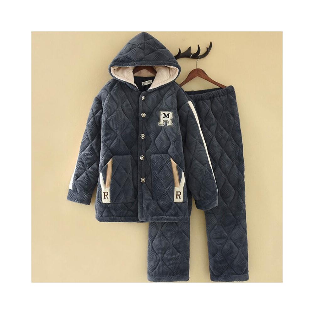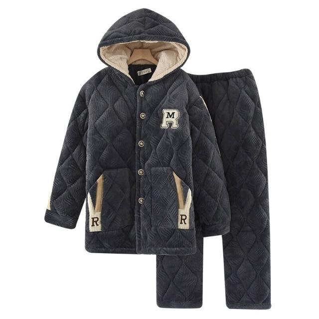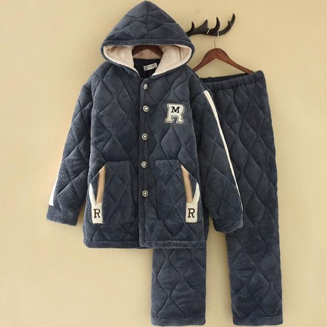 🧶棉柔面料 & 鬆緊舒適🩰 連帽睡衣男士秋冬季加厚加絨三層法蘭絨夾棉保暖珊瑚絨家居服套裝
