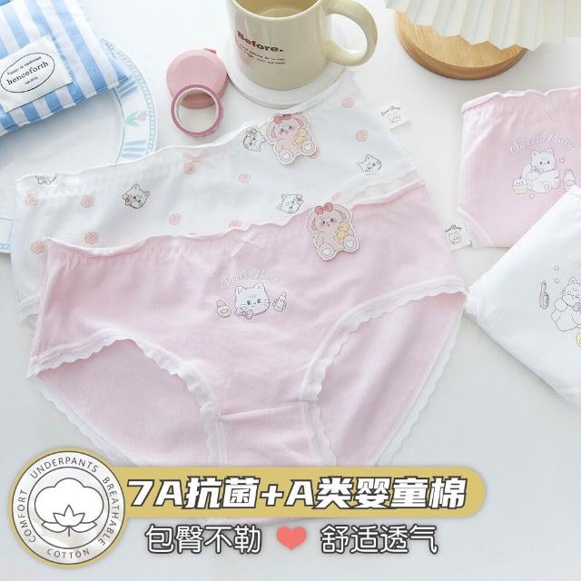 🎌日本工藝&柔軟親膚💨 A類嬰兒棉少女卡通內褲純棉裆7A抗菌柔軟三角褲蕾絲邊女士三角褲