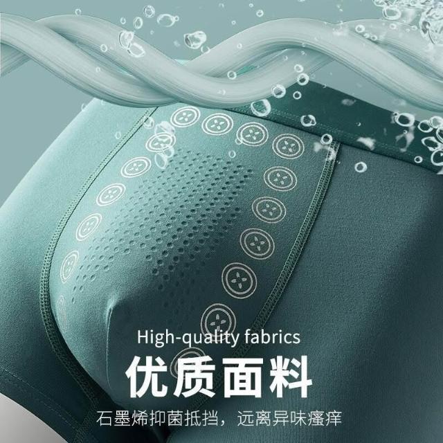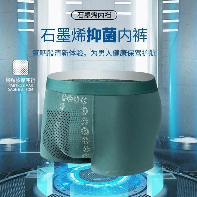 男士内褲透氣吸汗🩲舒適百搭 黑科技按摩石墨烯抗菌男士內褲男無痕負離子平角褲中腰四角褲批發