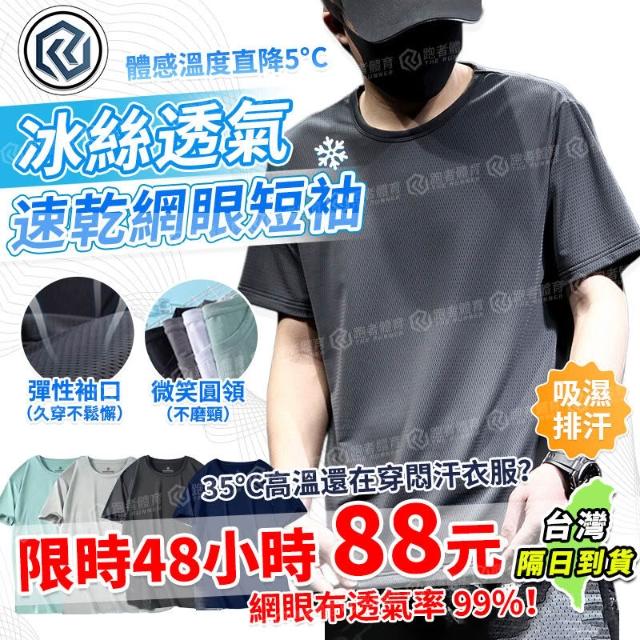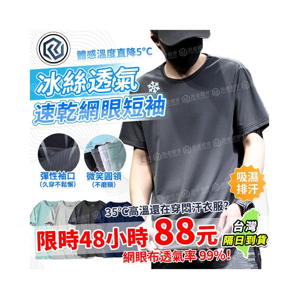 臺灣出貨&柔軟舒適⚡冰絲速乾T恤 男士短袖 速乾涼感衣 純色T恤 透氣涼感 網眼體恤 蜂巢空調衫 寬鬆健身 休閒上衣