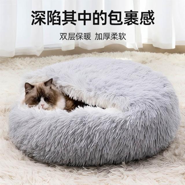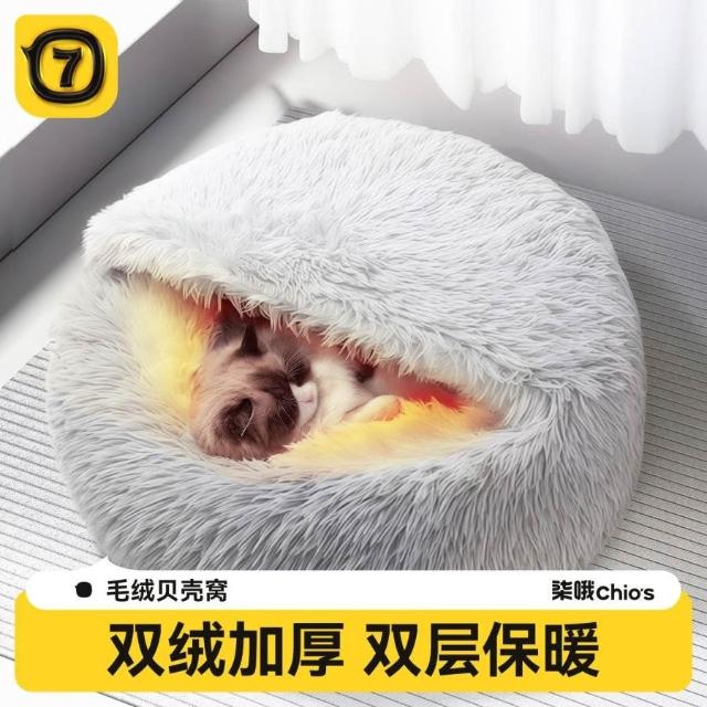免運貓窩貝殼窩長毛絨半封閉寵物貓床睡袋狗窩狗床封閉式冬季保暖