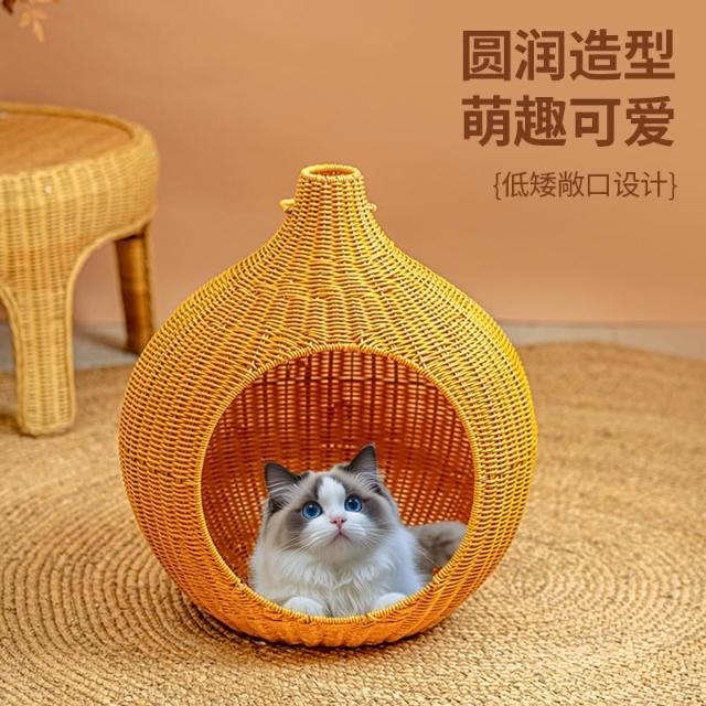 免運保暖可水洗編織貓窩四季通用仿藤編寵物用品狗窩懸空貓吊籃送