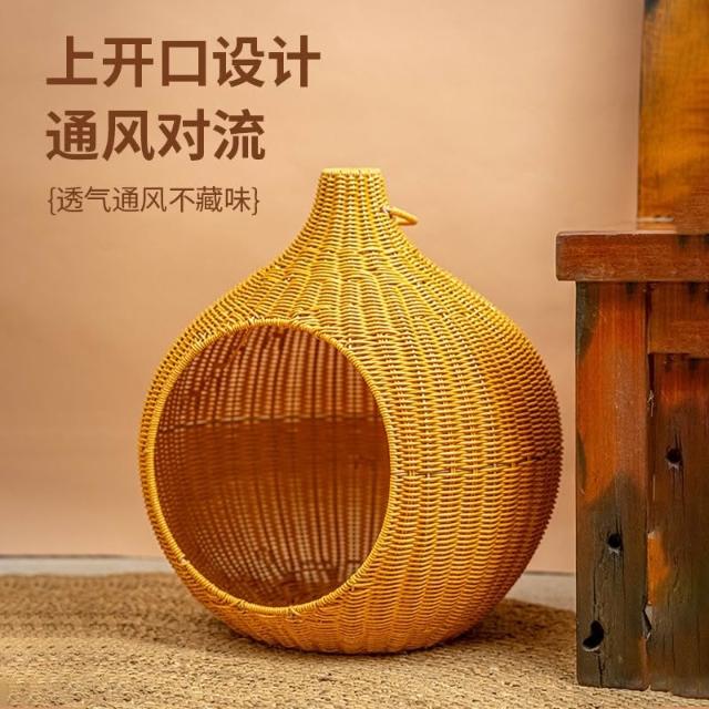免運保暖可水洗編織貓窩四季通用仿藤編寵物用品狗窩懸空貓吊籃送