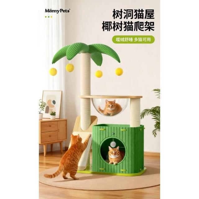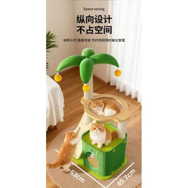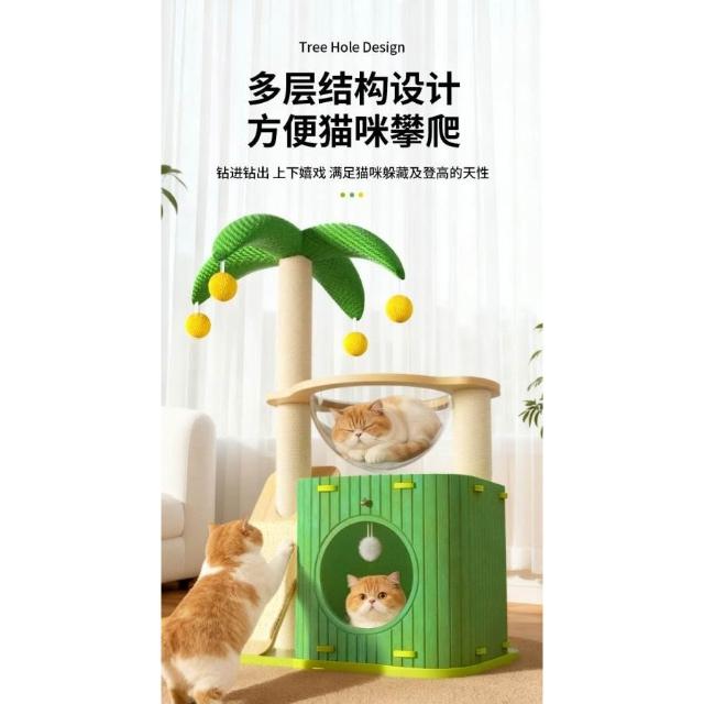 免運貓窩一體占地劍麻貓抓板太空艙貓咪樹洞家用貓跳臺玩具實木多
