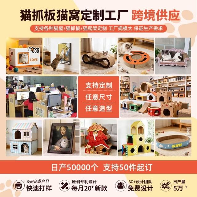 免運創意涂鴉貓窩貓抓板定制耐磨不掉屑瓦楞紙寵物貓咪窩深圳廠家