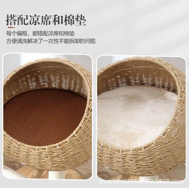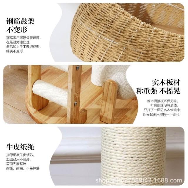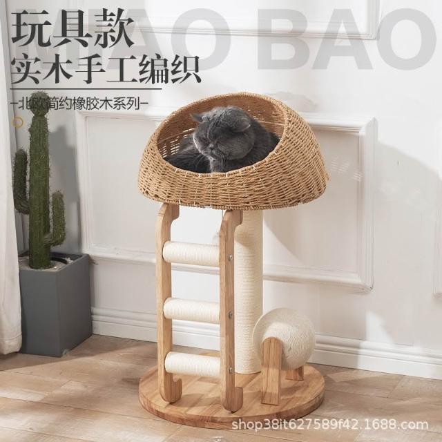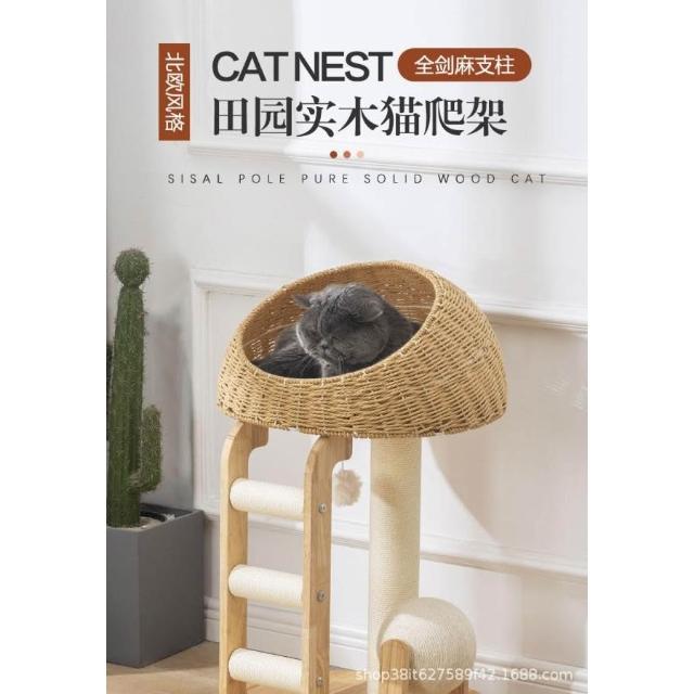 免運實木貓爬架貓窩貓樹一體日系劍麻柱形太空艙大型貓架子高層不