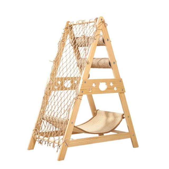 免運新款貓爬架實木貓抓板窩一體實木耐磨不掉屑吊床寵物用品廠家